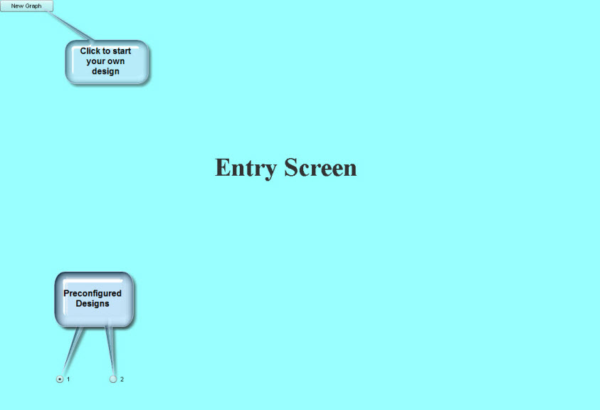 When you start the demonstration you will see a blank screen with a "New Graph" button in the upper left corner of the window and option buttons in the lower left corner of the window. The option buttons are used to show preconfigured applications.