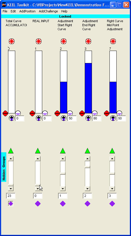 This technique shows the code segment for a curve that can exhibit the right portion of the Adjustable Trough (AdjustableTrough.xml). This is one of several complex curves that allow different shapes to be created by using input variables that can tune the shape of the curve. The construction of this curve is an accumulation of the simple features described in the techniques section of the User's Manual.