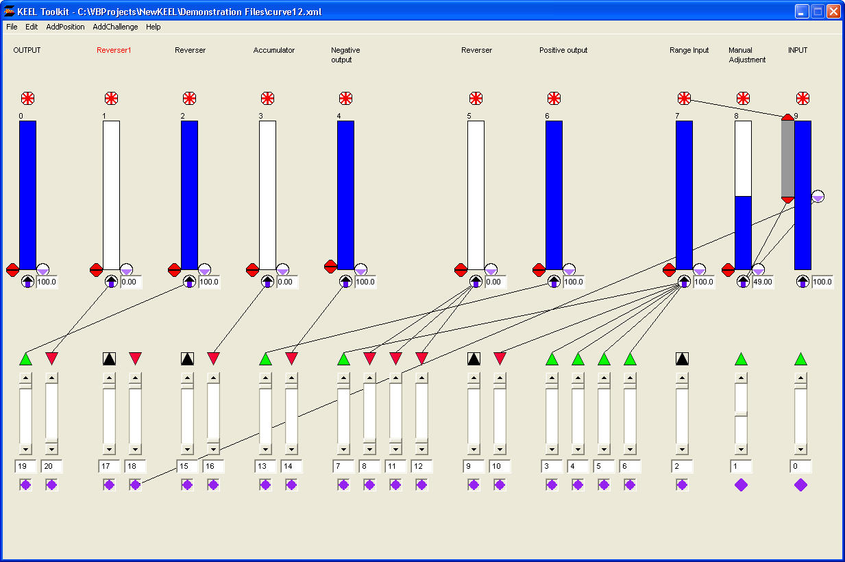 This is curve 11 inverted using a "Reverser". Also, the threshold of the "INPUT" is used to drive "Reverser1" which is then used to block the "OUTPUT" until the threshold of the "INPUT" position is reached.