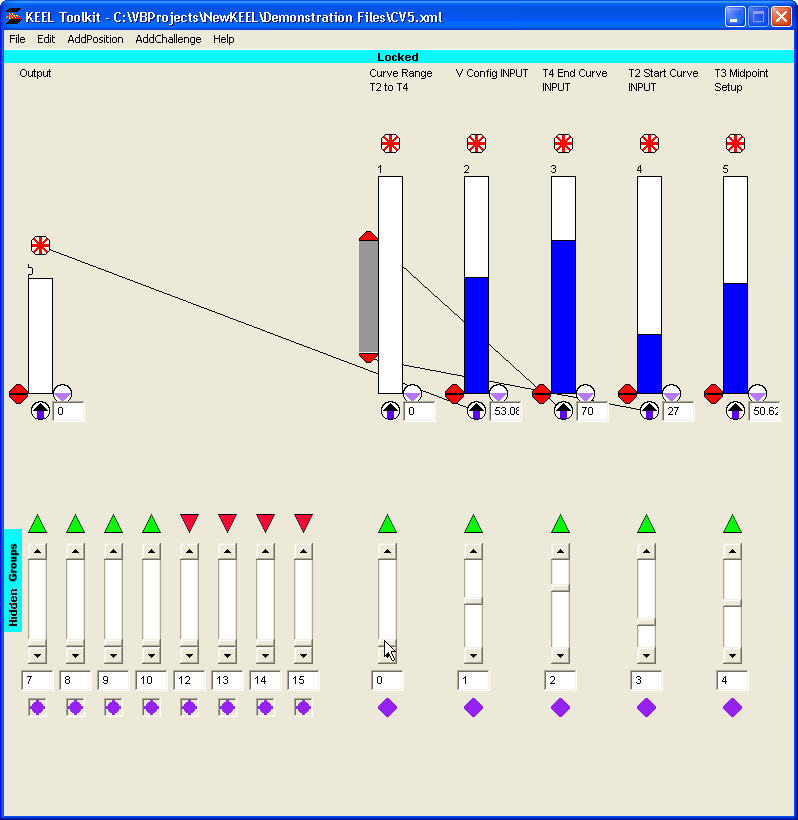 This technique shows the code segment for a curve segment that operates throughout an input range. This is one of several complex curves that allow different shapes to be created by using input variables that can tune the shape of the curve. The construction of this curve is an accumulation of the simple features described in the techniques section of the User's Manual.